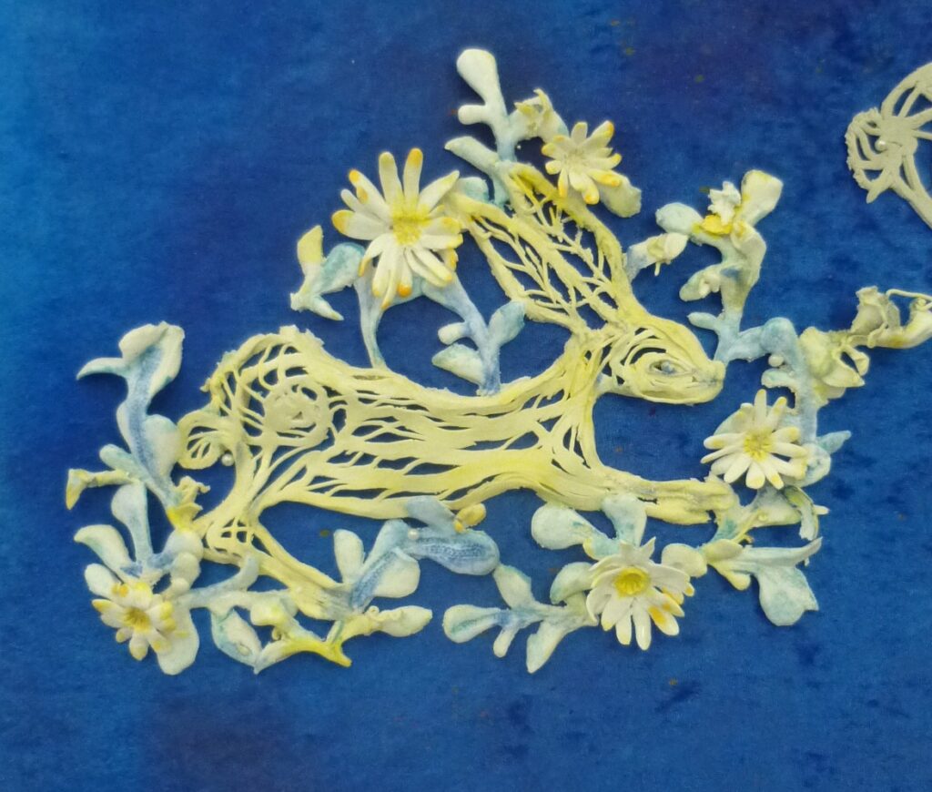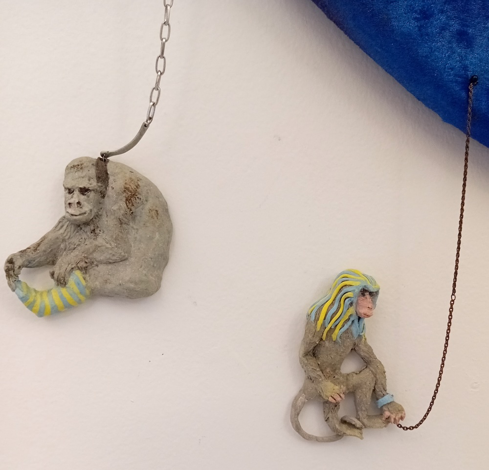 Un hommage à la tapisserie de la dame à la Licorne, ou là , tout n’est qu’ordre et beauté, luxe, calme et volupté, et où gambadent des lapins lubriques. Les hommes ont habillé des singes, les ont enchainés, maintenant exclus de la planète bleue ils gravitent autour.